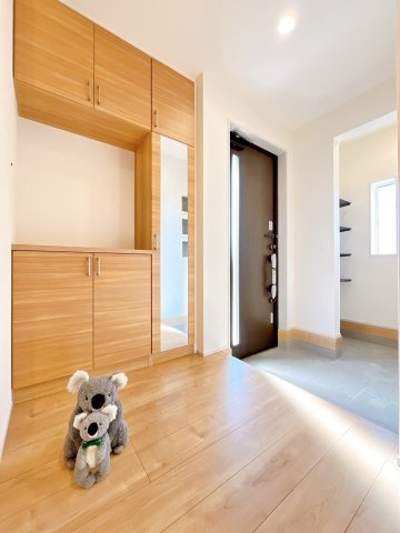 自然光差し込む明るい玄関は素敵な一日の始まり。土間収納があるので、アウトドア用品やベビーカーもそのまま収納できます。