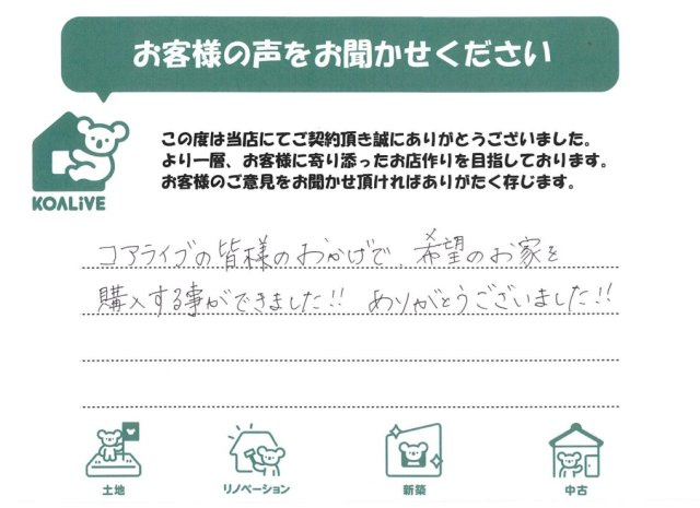高崎市・前橋市の新築戸建て|株式会社KOALIVE(コアライブ) > お客様の声一覧 > A様