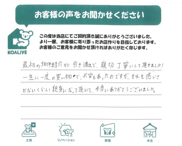 高崎市・前橋市の新築戸建て|株式会社KOALIVE(コアライブ) > お客様の声一覧 > O様