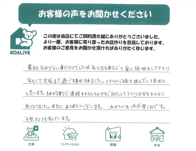 高崎市・前橋市の新築戸建て|株式会社KOALIVE(コアライブ) > お客様の声一覧 > I様